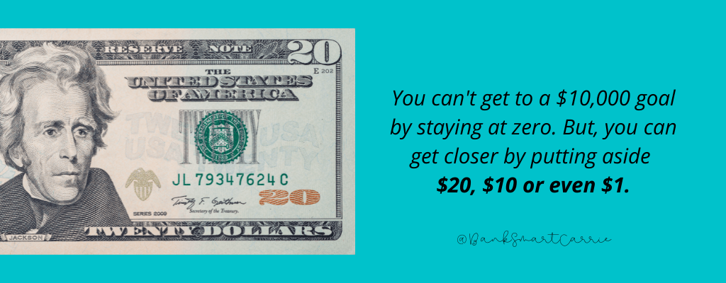 One of my favorite money reads of all time is called The $20 Emergency Fund. I first came across this article in 2017 and it changed my entire perspective on savings. The basis of the article is that you can’t get to a $10,000 goal by staying at zero. But, you can get closer by putting aside $20, $10 or even $1.