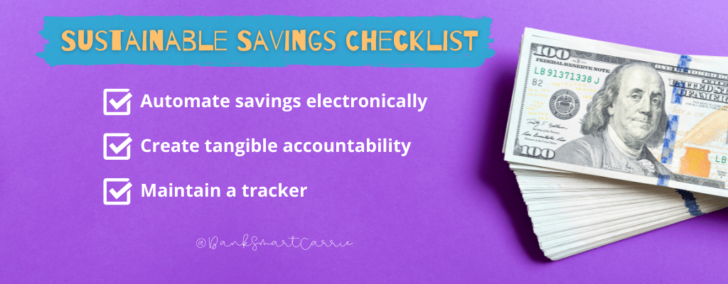 The next thing I learned is that it was never about an exact amount of money. How could I ever save $100/week if I hadn’t even managed to save $1? It just wasn’t second nature. I wasn’t in the habit of saving. I needed to build a sustainable savings routine, which I was able to do with three key steps:
